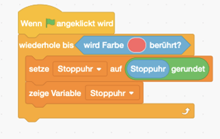 Da der Code für die Stoppuhr mit den Variablen etwas komplex ist, habe ich den Kindern bei Interesse den passenden Ausschnitt ausgedruckt hingelegt und sie konnten diesen Teil 1:1 nachprogrammieren.