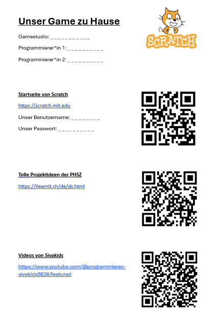 Anstatt ein Scratch-Konto anzulegen, ist es auch möglich die sb3-Dateien, wie im Video von Sivakids gezeigt, herunterzuladen und den Kindern zuzusenden.